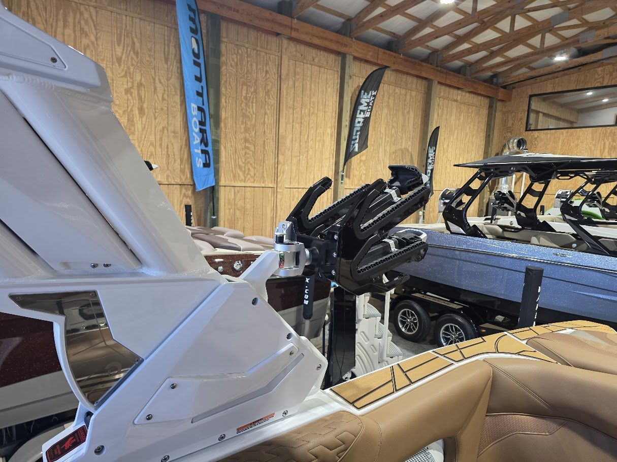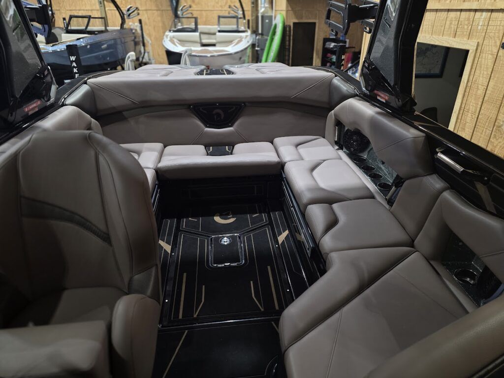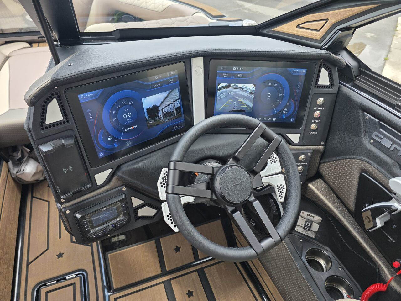 "1 USB/ 12-Volt Combo Power Outlets 4 USB/ USB C Combo Power Outlets Battery Management System w/ PDM Reset Panel Ski Pylon Stainless Steel Rub Rail Black or White Cobra Racing Driver's Seat w/Swivel and SS Flip Up Bolster Rear View Mirror 2-Interstate Battery Package with Control Center New Centurion Evo Touch Vision Dash System Knob Ops (KO) Stereo, Surf & Standard Operation New ZeroOff Pro GPS Cruise Control Depth Finder Nibral Tracking Fin Tandem Axle Boatmate Trailer: Swing Tongue, Transom Steps (16” by 12”), Underhull Spare Mount, Thinline Brake/Reverse/Turn Signal Lamps, Hydraulic Surge Disc Brakes, Heavy Duty Torsion Axles, Large Prop Guard Rollers, Ratchet Transom Straps Boatmate 15"" CORE Apex Alloy Wheels with Radial ST Tires & Black Lug Nuts New 5-Year Limited Warranty NMMA & NATM Certified" |
