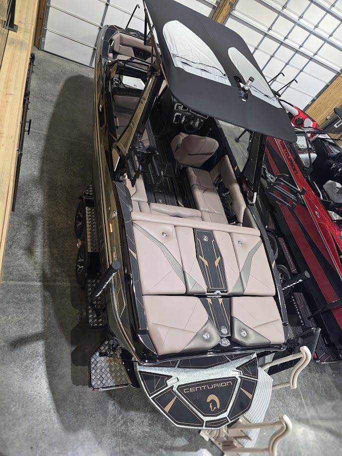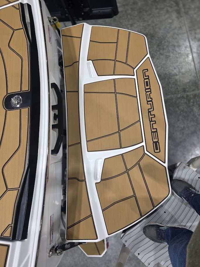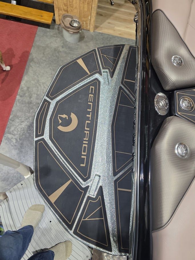 Engine Intake Water Strainer Engine Flush Kit Opti-V Hull Centurion Cropped Windshield w/ Model Designator Core Gelcoat Scheme (18 HMF 5 Base Color Choices) DropZone Auto Tower by Roswell (DZAT) New Tower Base Color (Black) Nv-style Centurion Black Chrome Decals Hex Accent Upholstery Scheme (16 Base, Main & Accent Colors) Customizable Gelcoated Fiberglass Interior Side Panel GatorStep Single Layer Shark Fin or Whiskey Barrel Deck & Riser Wet Sounds Back Bone Eco System, WS-BB-10 Black Box, AM/FM USB Stereo, Knob Ops & InScreen controls, R 6” black speakers and Amp Sub-floor Bow Ballast Hard Tank Sub-floor Lounge Ballast Hard Tanks Fast Mover Ballast System w/ 13.5gal Pumps by SeaFlo New Stinger Wake Plate w/ Lenco Smart Ram New Walkthrough Trash Shoot w/ Receptacle Hinged Shocked Lounge Seating Storage Rhino-Lined Storage Areas " |