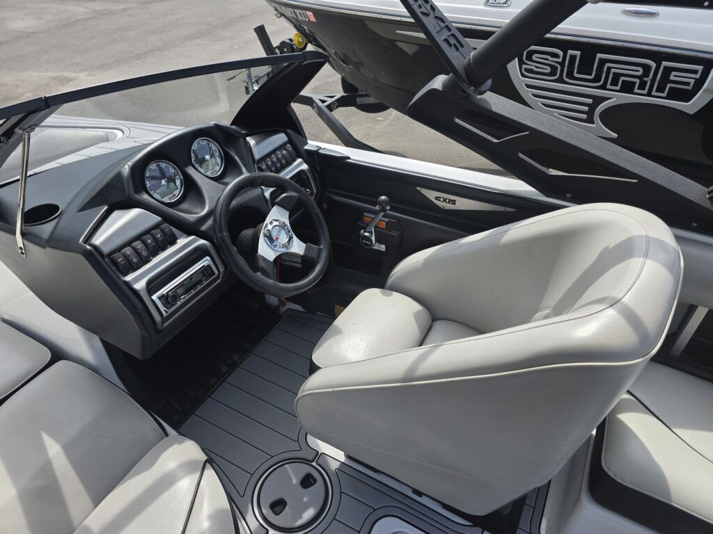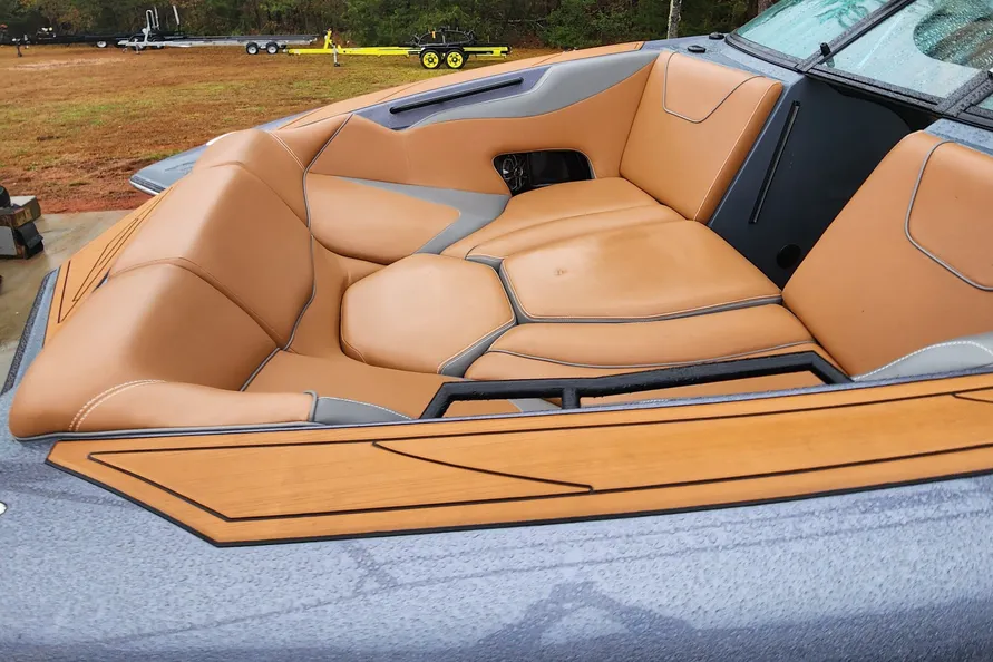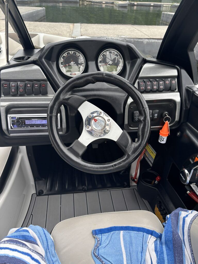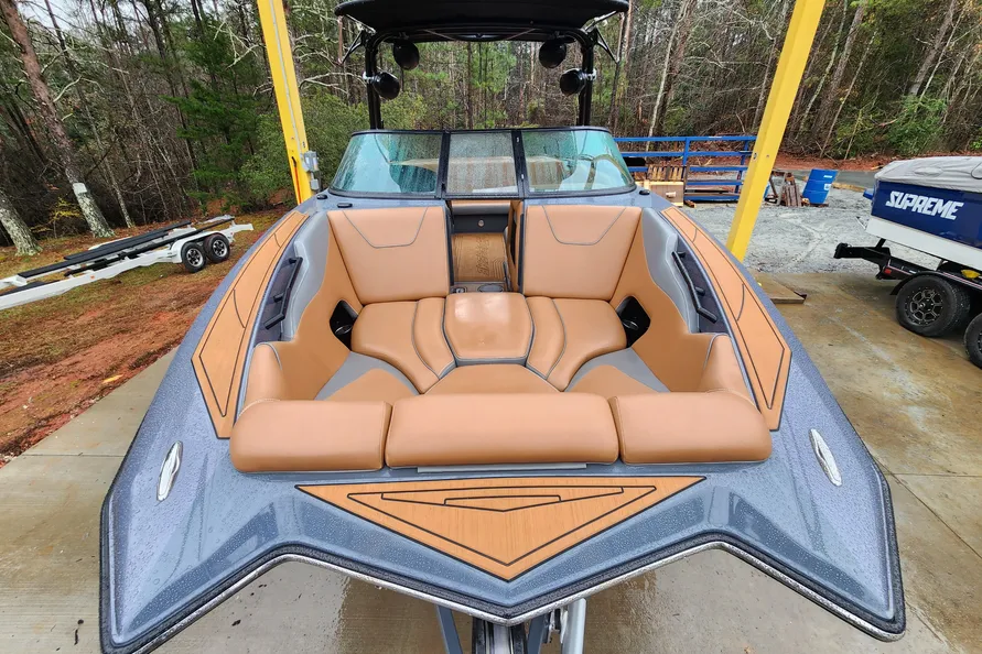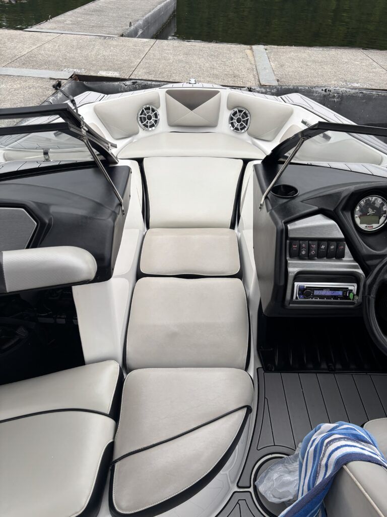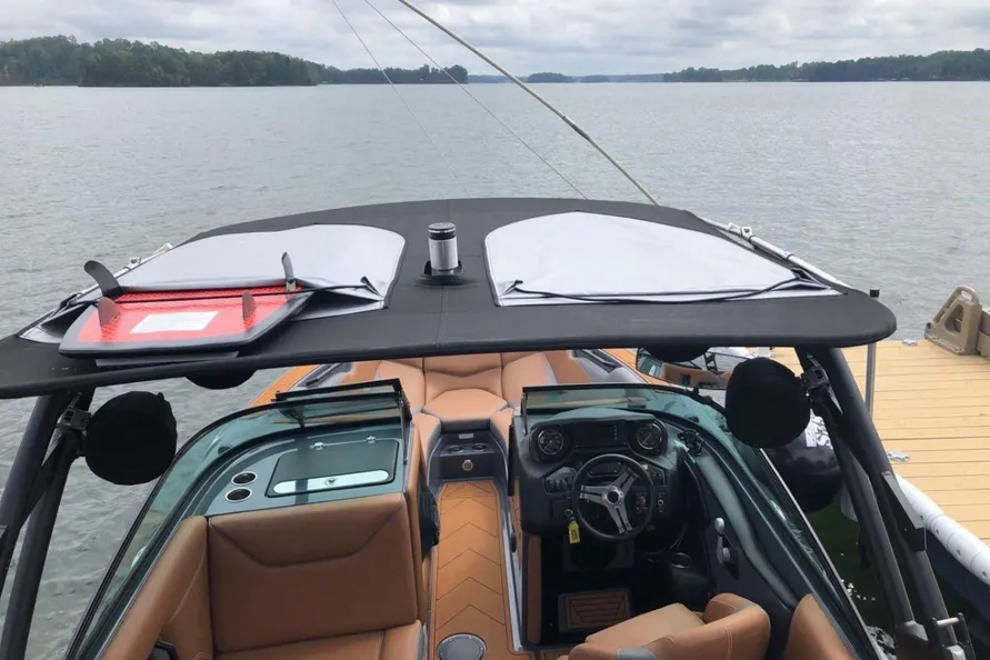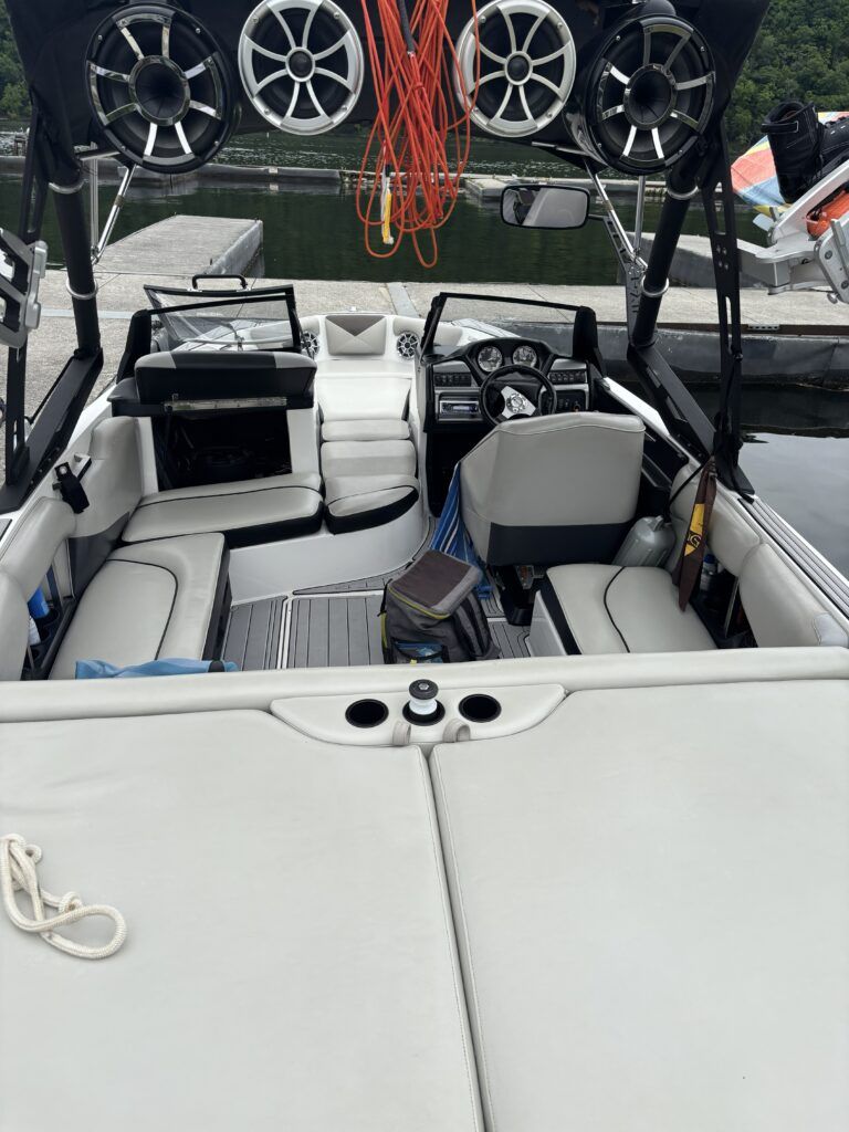 - Meticulously maintained wake boat ready to hit the water.